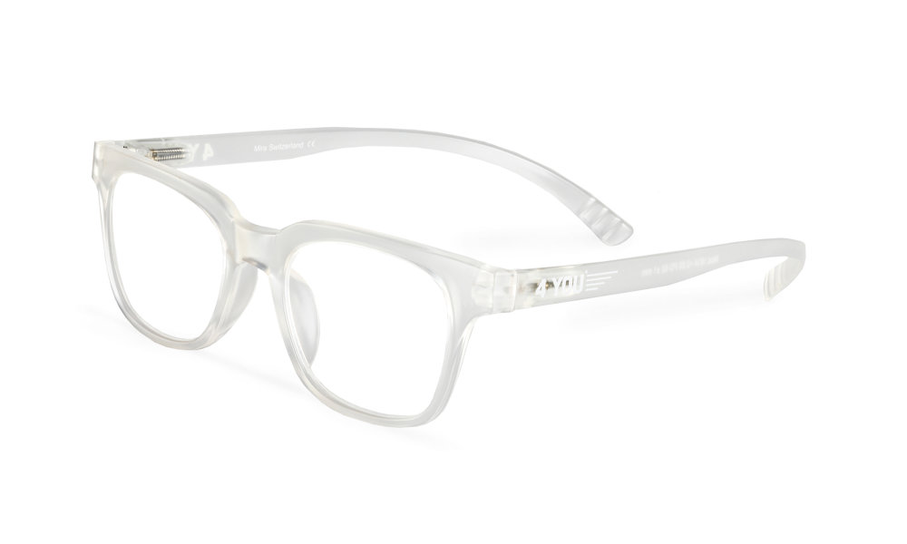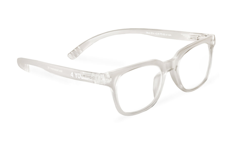 - Transparente, leicht mattiert Lesebrille mit verlängerten Bügeln.