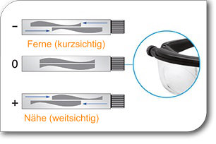 Stufenlos verstellbar von +3.0 bis -6.0 Dioptrien